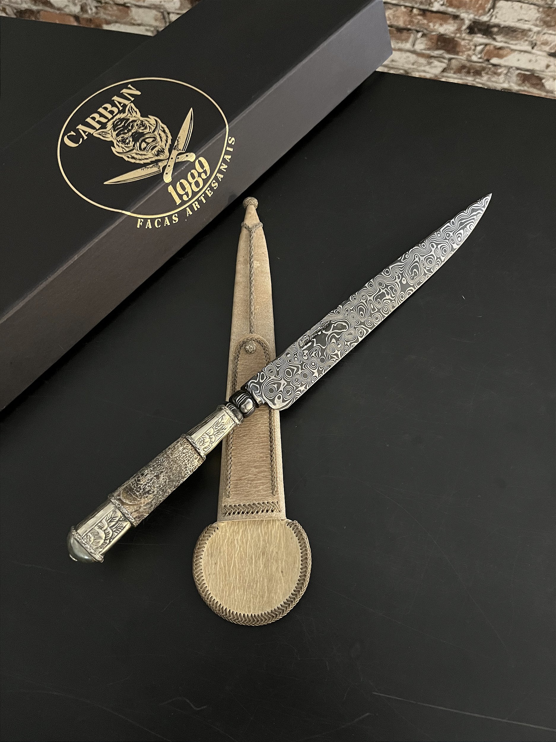 • Bainha em couro cru costurado a mão com lonca caprina.