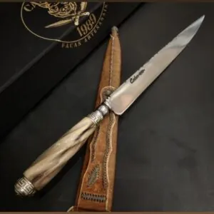 • Bainha em couro cru costurado a mão com lonca caprina;
