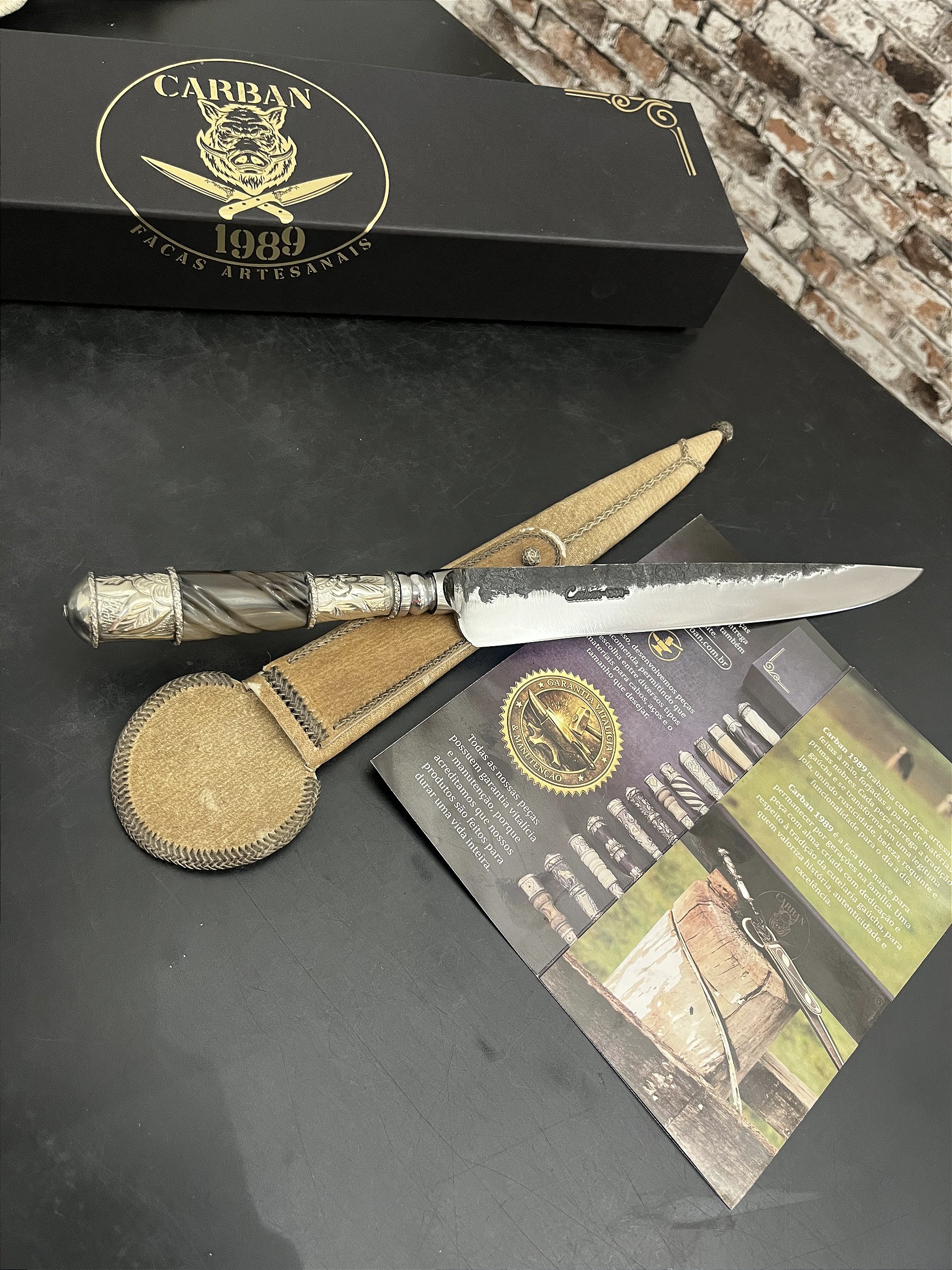 • Bainha em couro cru costurado a mão com lonca caprina;
