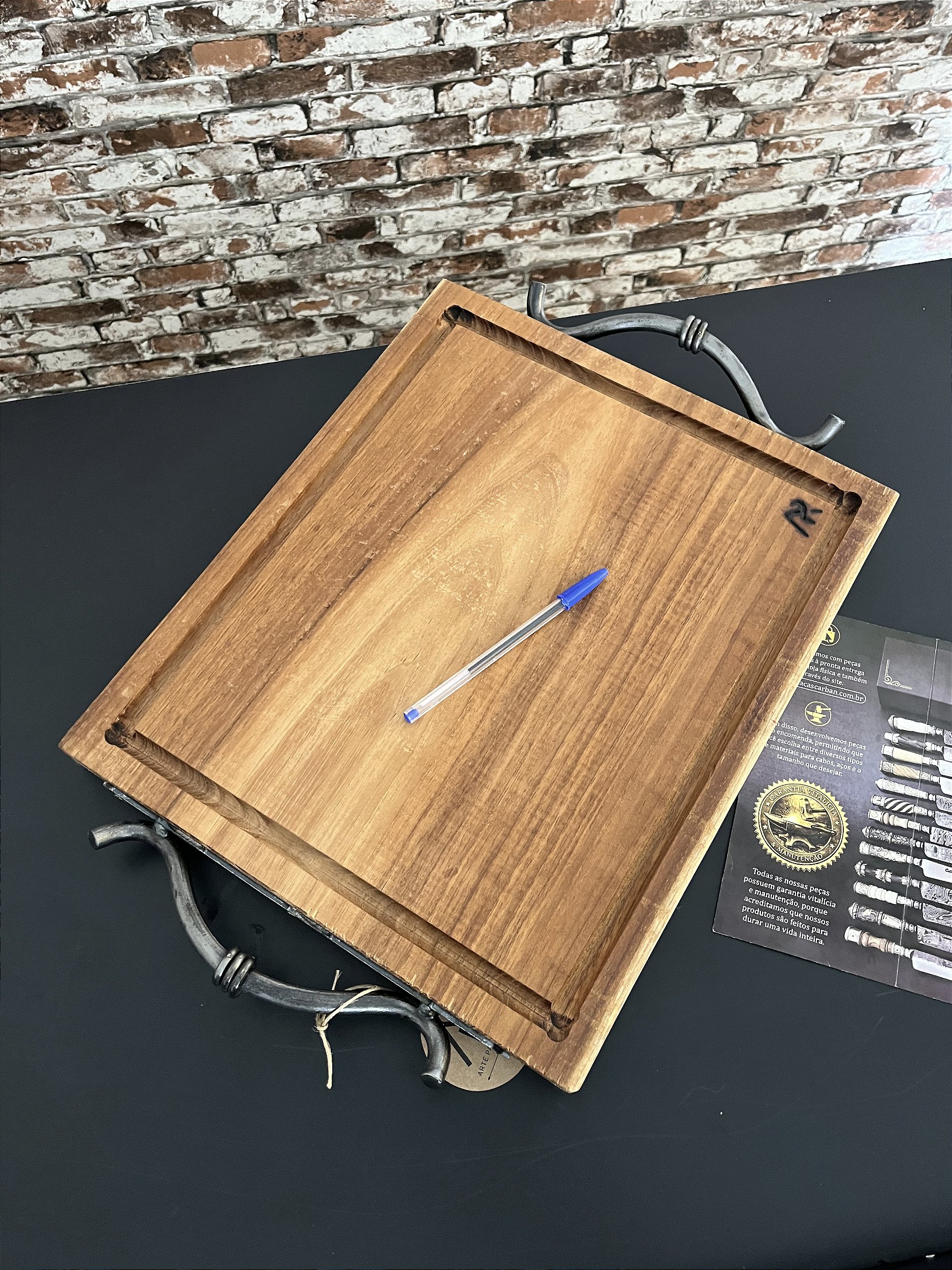 • Tabua de Corte, madeira de lei, alças forjadas; Medidas 40x32cm